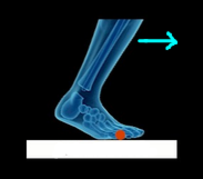 The foot pushes forward on the sidewalk; the sidewalk pushes forward on the foot.