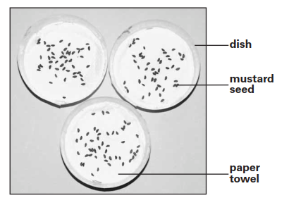 Evan has three dishes. He puts some paper towel and 40 mustard seeds in each dish.