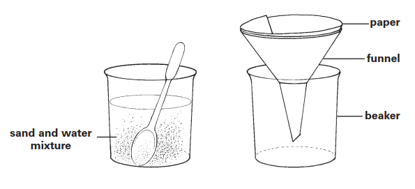 Hannah mixes sand and water together. The mixture can be separated using the equipment shown.