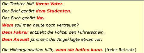 | Dativobjekt | Dativobjekt: "Wem?" |