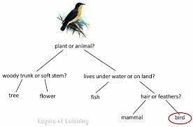 | Dichotomous key | A key with two choices at each stage |