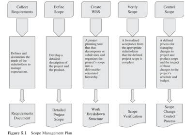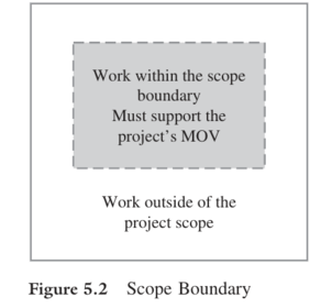 | Project Scope | project’s scope defines all the work, activities, and deliverables that the project team must provide in order for the project to achieve its MOV, and provide a basis for developing the project’s work breakdown structure (WBS) |