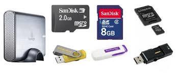 La memoria RAM y la memoria ROM, memorias USB, DVD, CD, cintas de video, entre otros.
