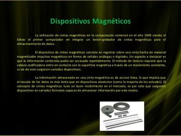 Los dispositivos o unidades de almacenamiento de datos son componentes que leen o escriben datos en medios o soportes de almacenamiento , y junto conforman . Almacenamiento Secundario . Estos dispositivos realizan las operaciones de lectura o escritura de los medios y soportes donde se almacenan o guardan , lógica y físicamente , los archivos de un sistema informático .