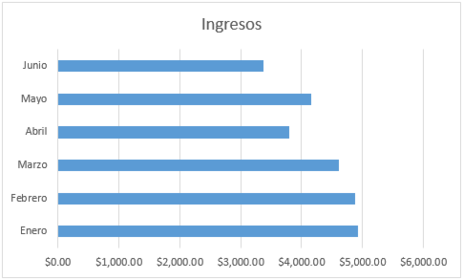 En un gráfico de barras se pueden insertar datos que se organizan en columnas o filas de una hoja de cálculo. Los gráficos de barras muestran comparaciones entre elementos individuales.