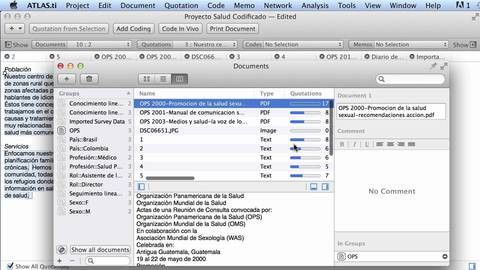 Son la unidad básica de análisis. Habitualmente el análisis se basará en ellos. Podemos entenderlos como conceptualizaciones, resúmenes o agrupaciones de las Citas, lo que implicaría un segundo nivel de reducción de datos. Aun así, debemos tener en cuenta que no necesariamente tienen que estar relacionados con las Citas, es decir, los Códigos pueden utilizarse también como “conceptos” útiles para el análisis que no necesariamente tienen una relación directa con fragmentos de texto