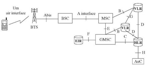 Caption: : INTERFACES GSM:Entre cada par de elementos de la arquitectura GSM existe una interfaz independiente. Cada interfaz requiere de su propio conjunto de protocolo