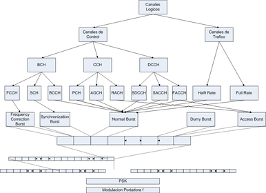 Concepto de Canal GSM usa modulaciones FDD y una combinación de TDMA y FDMA para proporcionar a las estaciones base y a los usuarios un acceso múltiple. Las bandas de frecuencias superiores e inferiores se dividen en canales de 200 KHz llamados ARFCN (“Absolute Radio Frequency Channel Number” ó Números de Canales de Radio Frecuencia Absolutos). El ARFCN denota un par de canales “uplink” y “downlink” separados por 45 MHz y cada canal es compartido en el tiempo por hasta 8 usuarios usando TDMA. Cada uno de los 8 usuarios usan el mismo ARFCN y ocupan un único slot de tiempo (ST) por trama. Para llegar a comprender el uso del método TDMA es necesario explicar el concepto de canal de los cuales existen dos tipos: - Físico. - Lógico. - Trafico. - Común.