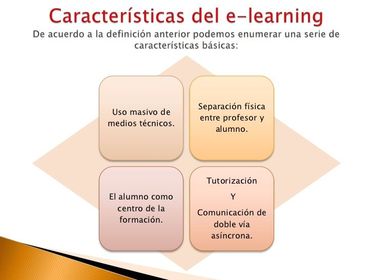 Separación física entre profesor y alumno: En la enseñanza a distancia, el profesor está generalmente separado físicamente de sus alumnos, los cuales recurren generalmente a las enseñanzas de sus profesores gracias a material impreso, audiovisual, informático etc. y, algunas veces mediante un contacto físico.Uso masivo de medios técnicos: El E-Learning toma como herramientas básicas las que le proporcionan las últimas tecnologías, llámense Internet, contenidos interactivos y realidad virtual, videoconferencias, etc. Estas permiten superar las barreras surgidas por la distancia y el tiempo.El alumno como centro de la formación: A diferencia de la enseñanza presencial, en este tipo de formación es el alumno el que tiene que saber gestionar su tiempo y decidir su ritmo de aprendizaje. Recae mayor responsabilidad en el al mismo tiempo que le proporciona mayor flexibilidad al aprendizaje.Tutorización: Esta es una característica imprescindible en la educación virtual, pues de no llevarse a cabo se cae en el peligro de solo colocar contenido para ser leído y no se consigue el óptimo aprovechamiento de los mismos.