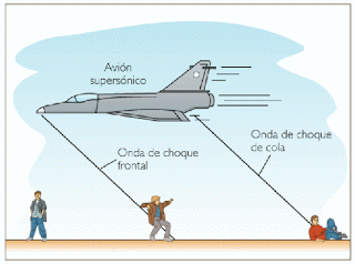 Las hiperbolas aparecen en algunas aplicaciones aeronauticas. Supongamos que un avion vuela a una altura h sobre la superficie terrestre a la velocidad supersonica v. Se plantea el problema de determinar la region de la superficie terrestre en cuyos puntos y en un momento determinado se oye o se ha oido el sonido del motor del avion