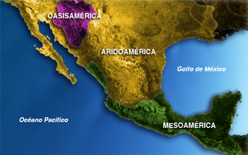 Se le llama Aridoamérica a una amplia zona territorial y cultural que se extiende al norte de Mesoamérica y colinda (rodea), la zona de Oasis-américa; abarcando territorios pertenecientes actualmente al norte de México y sur de EUA, en donde predominan los paisajes desérticos, áridos y semiáridos.El agua escasea excepto en los pocos ríos caudalosos, riachuelos, lagunas y fuentes subterráneas que se encuentran en la zona. Gracias a estar ubicada cerca del trópico de cáncer esta zona es más calurosa, y al ser bastante extensa y ser atravesada por algunas cordilleras como la cierra madre oriental y occidental, así como la sierra nevada, una amplia zona continental queda aislada de los vientos húmedos de las costas, fomentando la desertificación de la misma, a excepción de las zona denominada oasis-américa, que es irrigada por distintos oasis y riachuelos que se encuentran ahí. En este territorio la vegetación es relativamente escasa siendo comunes plantas del tipo de las cactáceas y los arbustos que crecen típicamente en las temporadas de lluvias, es un lugar en el que la fauna está adaptada a la vida desértica y semidesértica.