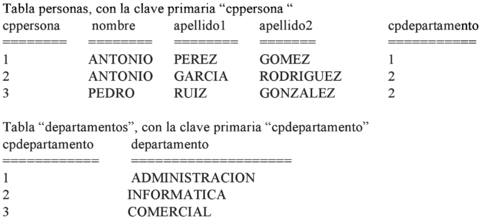Ejemplo SQL Right Join:Tabla personas, con la clave primaria “cppersona “cppersona nombre apellido1 apellido2 cpdepartamento