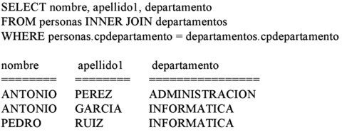 SELECT nombre, apellido1, departamentoFROM personas RIGHTJOIN departamentos