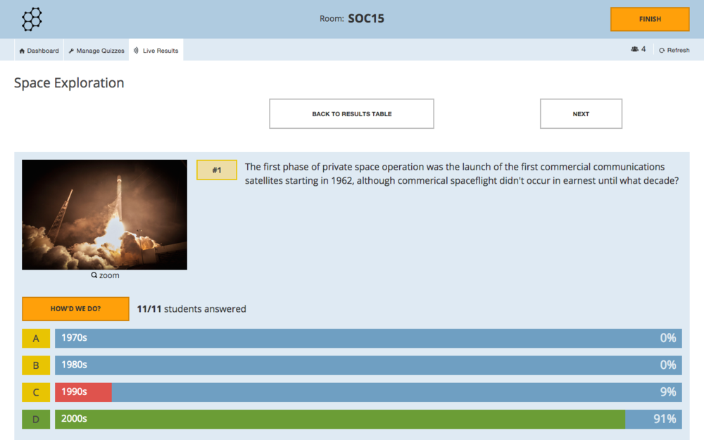 SOCRATIVE es una herramienta creada por ingenieros apasionados por la educación, SOCRATIVE es una herramienta que permite a los docentes realizar ejercicios, juegos educativos, donde los estudiantes pueden resolver mediante dispositivos móviles, bien sean smartphones, computadores o tablets. Los profesores pueden ver también los resultados de las actividades, dando una ventaja esto que es que el docente puede modificar las lecciones posteriores, con el fin de hacerlas mas personalizadas
