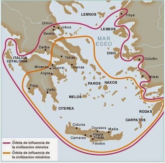 Caption: : Área de influencia de las civilizaciones minoica y micénica