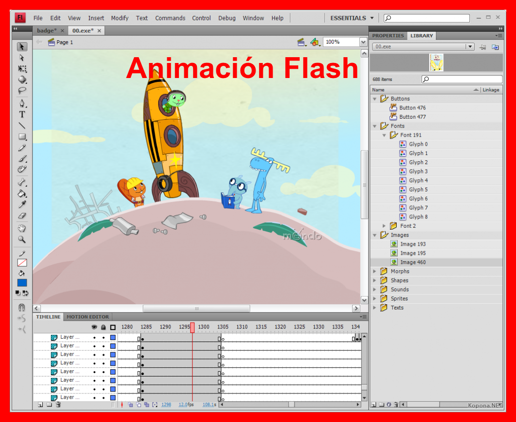 ESCENARIO mejora la apariencia del espacio de trabajo y es el espacio de flash, donde se muestra el documento durante la reproducción. |
