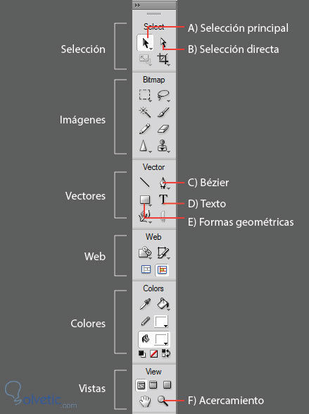 | PANEL DE HERRAMIENTAS contiene todas las herramientas necesarias para el dibujo. |