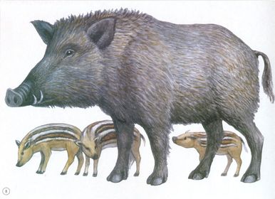 | Дикий зверь тропой бежит, То как хрюкнет, завизжит. С ним детишек караван, Этот зверь лесной – … | |