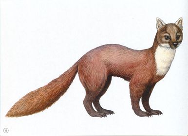 | Хищный зверёк, чуть побольше хорька, Светло-коричневый мех у зверька, Днём озорница в тайге не ленится, Прыгает с ветки на ветку | |