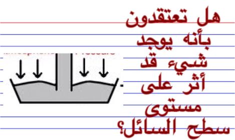 | نعم هناك قوة عمودية دفعت سطح السائل للأسفل هي التي تسببت بارتفاعه داخل الكوب | |