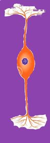 | Bipolares | Poseen un cuerpo celular alargado y de un extremo parte una dendrita y del otro el axón (solo puede haber uno por neurona). El núcleo de este tipo de neurona se encuentra ubicado en el centro de ésta, por lo que puede enviar señales hacia ambos polos de la misma. Ejemplos de estas neuronas se hallan en las células bipolares de la retina (conos y bastones), del ganglio coclear y vestibular, estos ganglios son especializados de la recepción de las ondas auditivas y del equilibrio. |