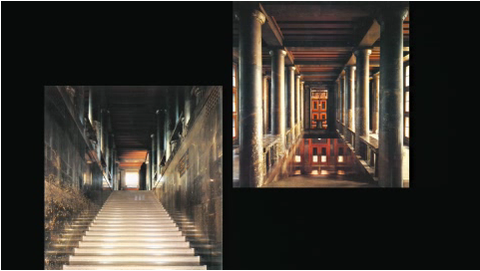 | seien Architektur hat eine innere Kraft: religiös, Nationalismus, (keine schöne Arichitektur), gleiche Elemete epic/aussergewöhnlich, antik, historisch, vorzeitlich | |