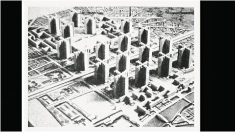 | Plecniks Wiederaufbau ist zeitgenössisch mit Le Corbusier, Ville Radieuse 1924 Modell Abneigung gegen technokratische Moderne (Die Technokratie ist eine Form der Regierung, in der alle Handlungen auf wissenschaftlichem und technischem Wissen aufbauen) bring Plecnik ein anderes Bild der Stadt | |