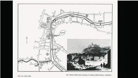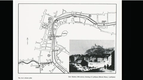 | Uferdamm wollten aus dem Fluss einen Kanal machen, und den Fluss zudecken Stadt südlich rastermässig erweitern 1914 Plecnik interessiert sich wieder für Ljubljana | |