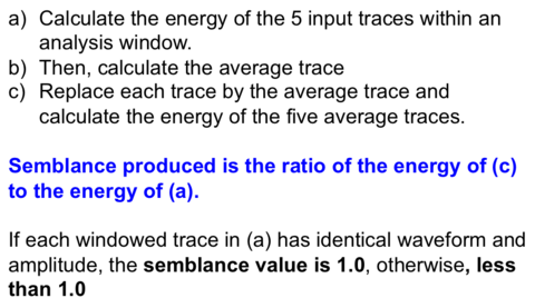 | Variance based coherence > most popular > almost identical to semblance method > Variance = 1 - semblance estimate coherence > measure of how well each trace fits the mean trace > if all traces are identical/similar = 0 > if all traces are identical but of different amplitude = > 0 | Variance = 1 - |
