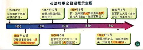 | _________[時間],聯軍迫清廷______________ | 同年(1860)10月 簽訂《北京條約》 |