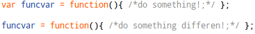 | function variables can be assigned to new values/functions. just like a regular varible: | |