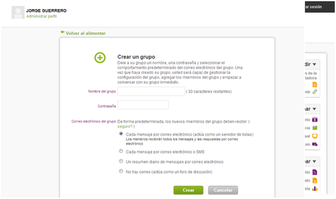 | 5) Asignar el nombre que se quiere al grupo y la contraseña. Hacer clic a CREAR para continuar. |