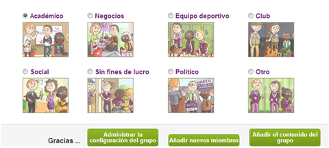 | 6) Seleccionar la categoría que se quiera poner para el grupo creado. |