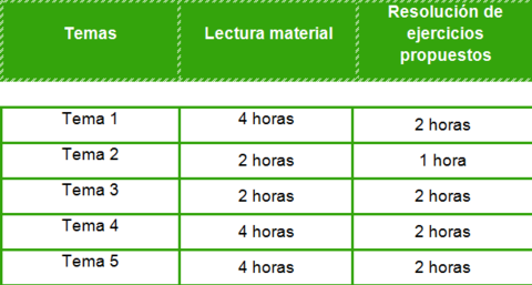 | Distribución de tiempo que consideramos tiene el estudio de cada uno de temas | |