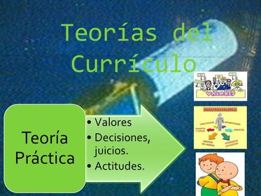 | Tema: Teorías Curriculares. Definición: Es el conjunto de principios y conceptos que intentan explicar qué es y cómo funciona un Proyecto Curricular. Comentario Personal: Este le ayuda a los alumnos a desarrollar una identidad, una conciencia, una moral que les permite definirse como personas. | |