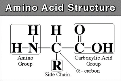 | Proteins Cont' | Amino acids are the monomers Common structure with variable R-group 20 amino acids Side-chain determines structure and function |