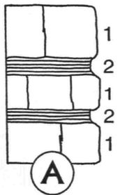 | zyklische Sedimentation | regelmäßiger Wechsel zwischen drei oder mehr Gesteinstypen symmetrisch (siehe Abbildung) asymmetrisch |