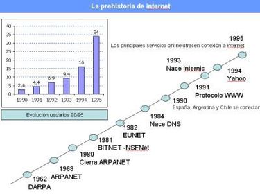 | Historia | ~1958: Inicio de investigaciones por parte de ARPA, una agencia del ministerio estadounidense de defensa. ~1961: Se envía el primer correo electrónico por IBM. ~1963: Conmutación de paquetes (Len Kleinrock) ~1969: ARPANET, primera red científica y académica (red de computadoras). |