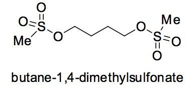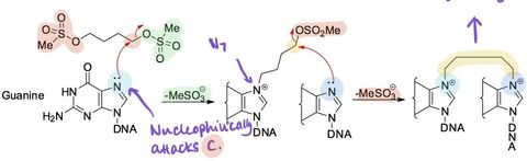 | write down the mechanism for busulfan reacting with DNA | |