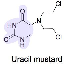 | Describe Uracil mustard | Uracil ring is electron withdrawing Less reactive alkylating agent Mimics a nucleic acid base Concentrated in fast growing cells |