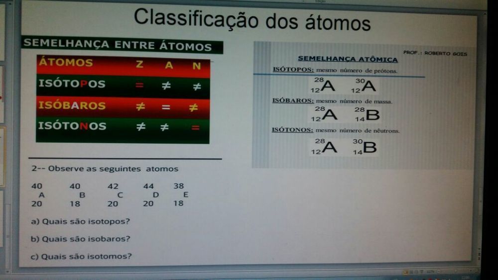 Classificação dos átomos