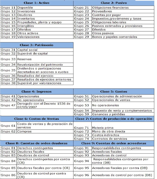 Identificación Clase, Grupo, Cuenta y Subcuenta