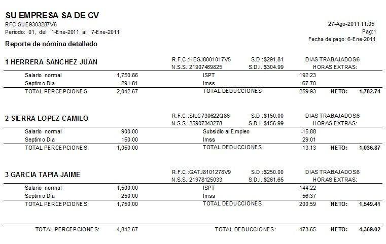Es un documento que muestra la cantidad de dinero pagada a cada empleado que labora en la empresa, por los conceptos de sueldos y salarios