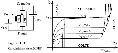 características del transistor JFET.