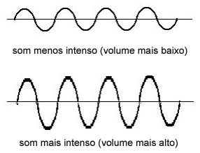 A intensidade do som, ou volume, está associada à energia transportada pela onda sonora e, portanto, à amplitude de sua vibração, permitindo distinguir sons fortes dos fracos.