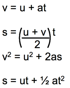 Constant acceleration equations