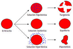 una celula con menos concentracion de solutos no difusibles el agua se difundira al interior de la celula hinchandola, el agua continua hacia el interior diluyendo el liquido intracelular mientras el extracelular se concentra asta que ambas tengan la misma osmolaridad