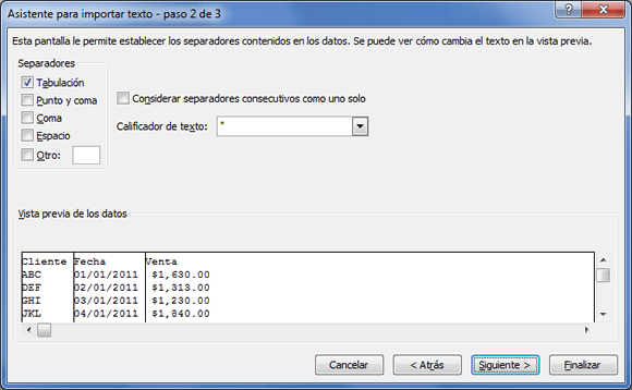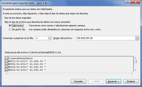 Se abrira el cuadro de diálogo Importar Archivo de Texto