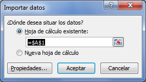 Una vez indicada la celda de destino debera presionar aceptar y comenzara a importar los datos
