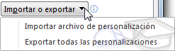 Elegimos el botón Importar o exportar y seleccionamos Exportar todas las personalizaciones.